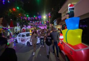 El primero de diciembre la calle se llena de caravanas y cada noche hay un espectáculo distinto: presentaciones infantiles, bandas de tambores, recorridos en motocicleta, bicicletas y grupos de “combiamigos”.